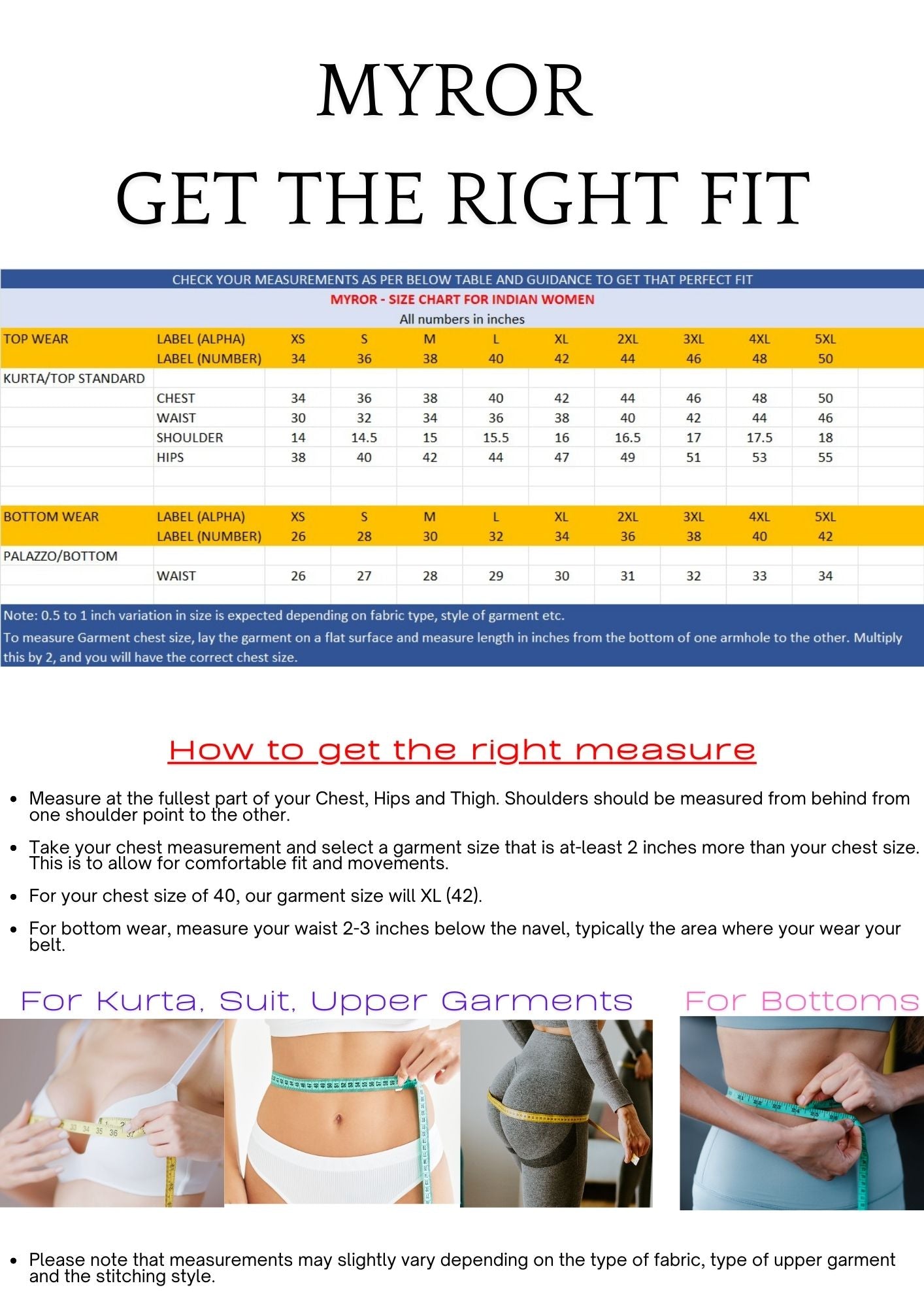 Quality is supreme as per Myror's commitment. Myror takes pride in ensuring that all our garments are value for money and bring out the best in the person who wears them. This can be gift wrapped with personalized wishes or messages also, making it an ideal choice to gift someone. Myror clothing is the Perfect Gift for any woman - Be It Your Mother, Wife, Sister or a Friend.
