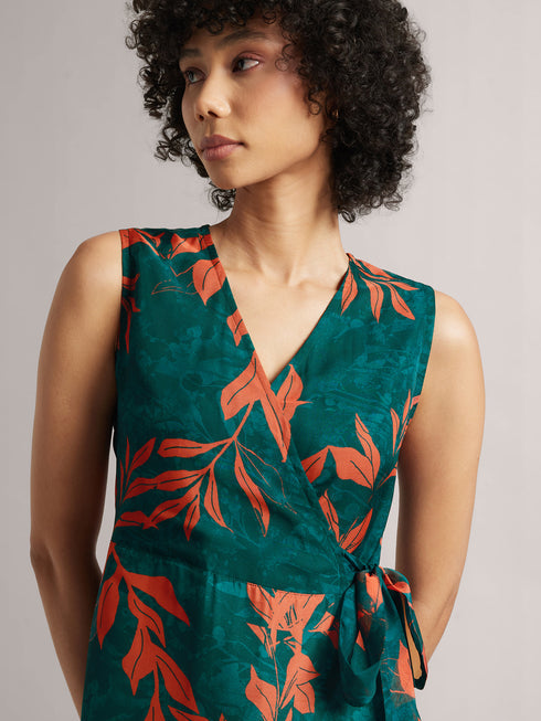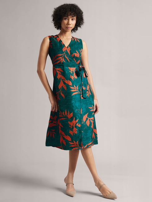 - Dress Length: 41(IN) | Colour: Teal Green | Pattern: Floral | Occasion: Casual | Style: Wrap | Sleeve Type: Sleeveless (No Sleeve )